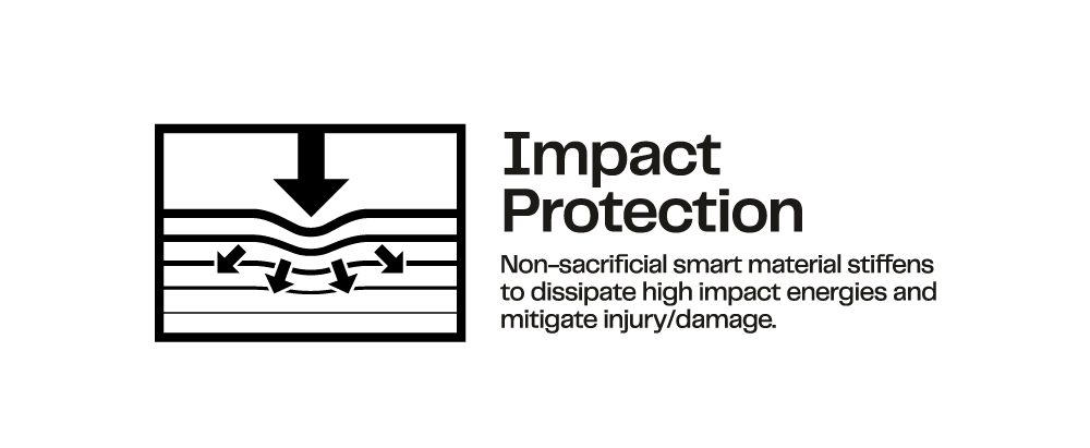 D3O® technology is patented and has a unique molecular structure, allowing it to remain soft and flexible. That changes on impact: D3O’s molecules lock together, absorbing the impact energy and dissipating it. This reduces the impact of the force transmitted.